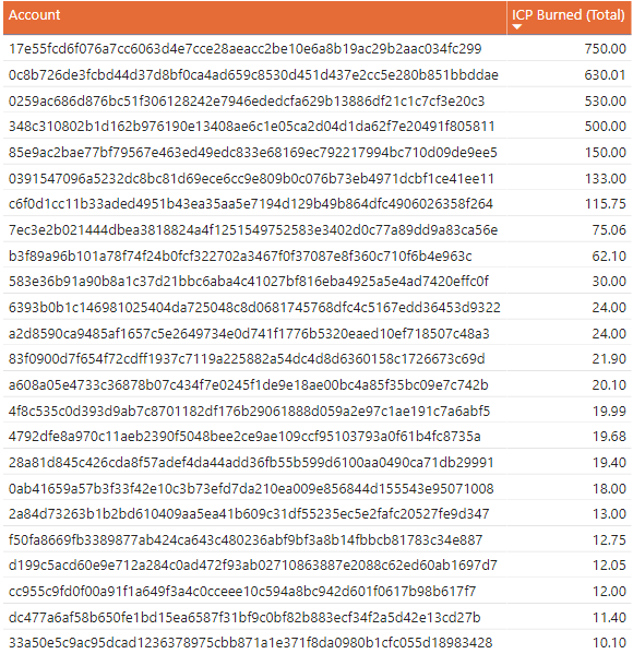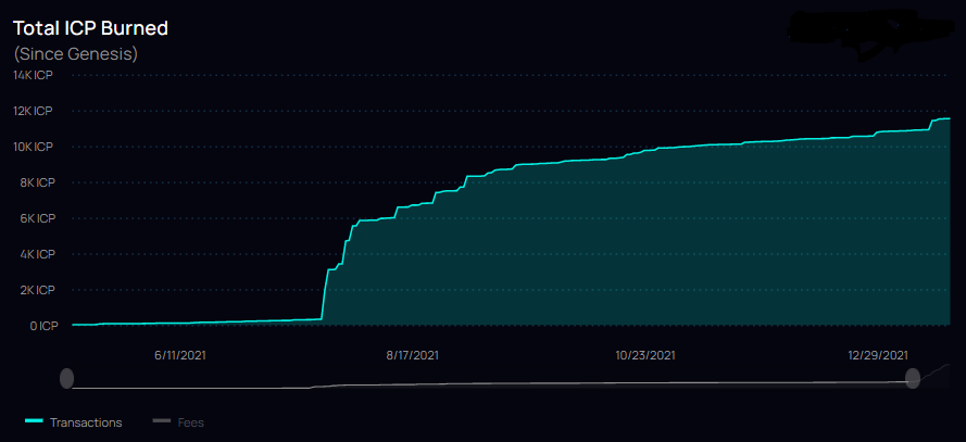 Below is a chart of the ICP burned from Genesis until 17JAN22 from ICA’s dashboard. It shows almost no ICP burned for cycles until mid-July 2021, followed by a rapid increase to about 9k ICP through August and finally in a steady increase rate from September through December.